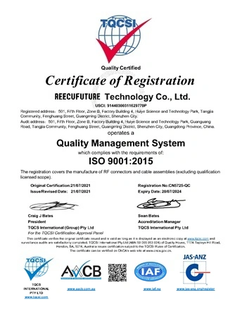 Founded in 2016 and headquartered in Shanghai, China, REECUFUTURE specializes in high-quality RF and microwave testing components. Our main product lines include Standard RF Test Probes, RF Test Connectors, High-Frequency Test Probes, RF Test Cable Assemblies, RF Test Modules, and customized solutions. With precise engineering and strict quality control, our products ensure stable performance, low signal loss, and reliable results.
